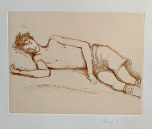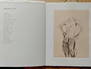 Per meglio spiegare l’accoppiata De Pisis–Mandiargues: Bona De Pisis era la nipote di Filippo De Pisis, la figlia di suo fratello Leone. Nel 1947 lo zio Filippo se la portò con sé a Parigi per farle perfezionare i suoi studi pittorici interrotti dalla guerra, e Bona lì frequentò il gruppo surrealista, diventandone una fervente seguace; fra di loro conobbe lo scrittore André Pieyre De Mandiargues, che poi sposò nel 1950. Negli anni ’50 divenne una famosa pittrice surrealista, amata anche da poeti come Giuseppe Ungaretti e Octavio Paz, che la definì “la donna più bella del mondo”; bellezza che poterono ammirare anche tutti gli spettatori dell’esecuzione di “Allez-Hop” di Luciano Berio avvenuta al Teatro La Fenice di Venezia nel 1959, quando Bona improvvisò nella sala uno spogliarello passato alla storia. Dagli anni ’60 lei e il marito, si dedicarono anche a curare la ristampa di scritti e memorie dello zio De Pisis, e questa rara raccolta “11+1” si inserisce per l’appunto in questo filone di recupero artistico del ben più famoso parente.
