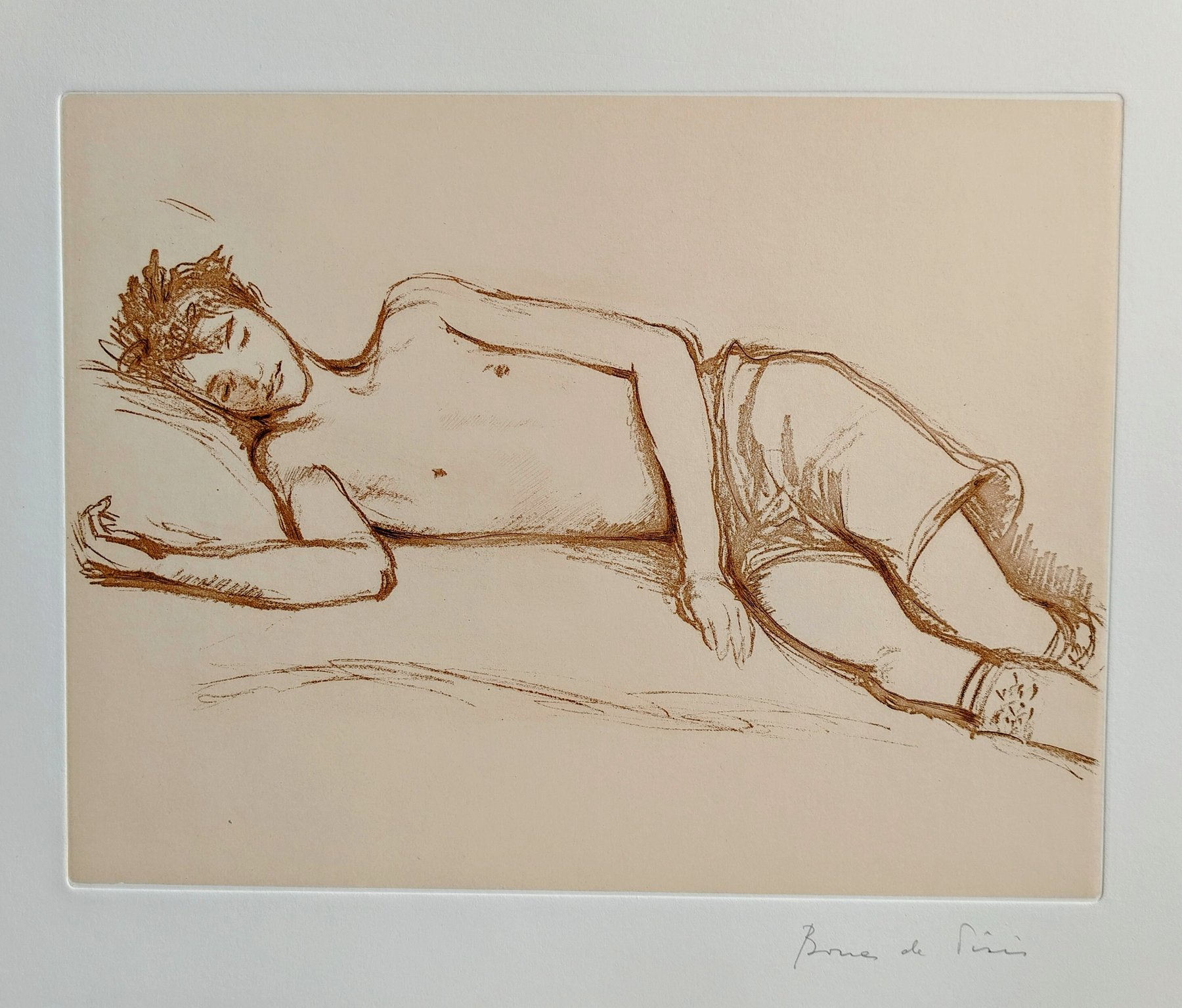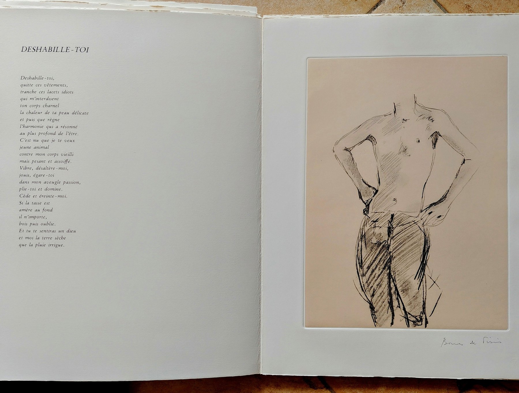 Per meglio spiegare l’accoppiata De Pisis–Mandiargues: Bona De Pisis era la nipote di Filippo De Pisis, la figlia di suo fratello Leone. Nel 1947 lo zio Filippo se la portò con sé a Parigi per farle perfezionare i suoi studi pittorici interrotti dalla guerra, e Bona lì frequentò il gruppo surrealista, diventandone una fervente seguace; fra di loro conobbe lo scrittore André Pieyre De Mandiargues, che poi sposò nel 1950. Negli anni ’50 divenne una famosa pittrice surrealista, amata anche da poeti come Giuseppe Ungaretti e Octavio Paz, che la definì “la donna più bella del mondo”; bellezza che poterono ammirare anche tutti gli spettatori dell’esecuzione di “Allez-Hop” di Luciano Berio avvenuta al Teatro La Fenice di Venezia nel 1959, quando Bona improvvisò nella sala uno spogliarello passato alla storia. Dagli anni ’60 lei e il marito, si dedicarono anche a curare la ristampa di scritti e memorie dello zio De Pisis, e questa rara raccolta “11+1” si inserisce per l’appunto in questo filone di recupero artistico del ben più famoso parente.