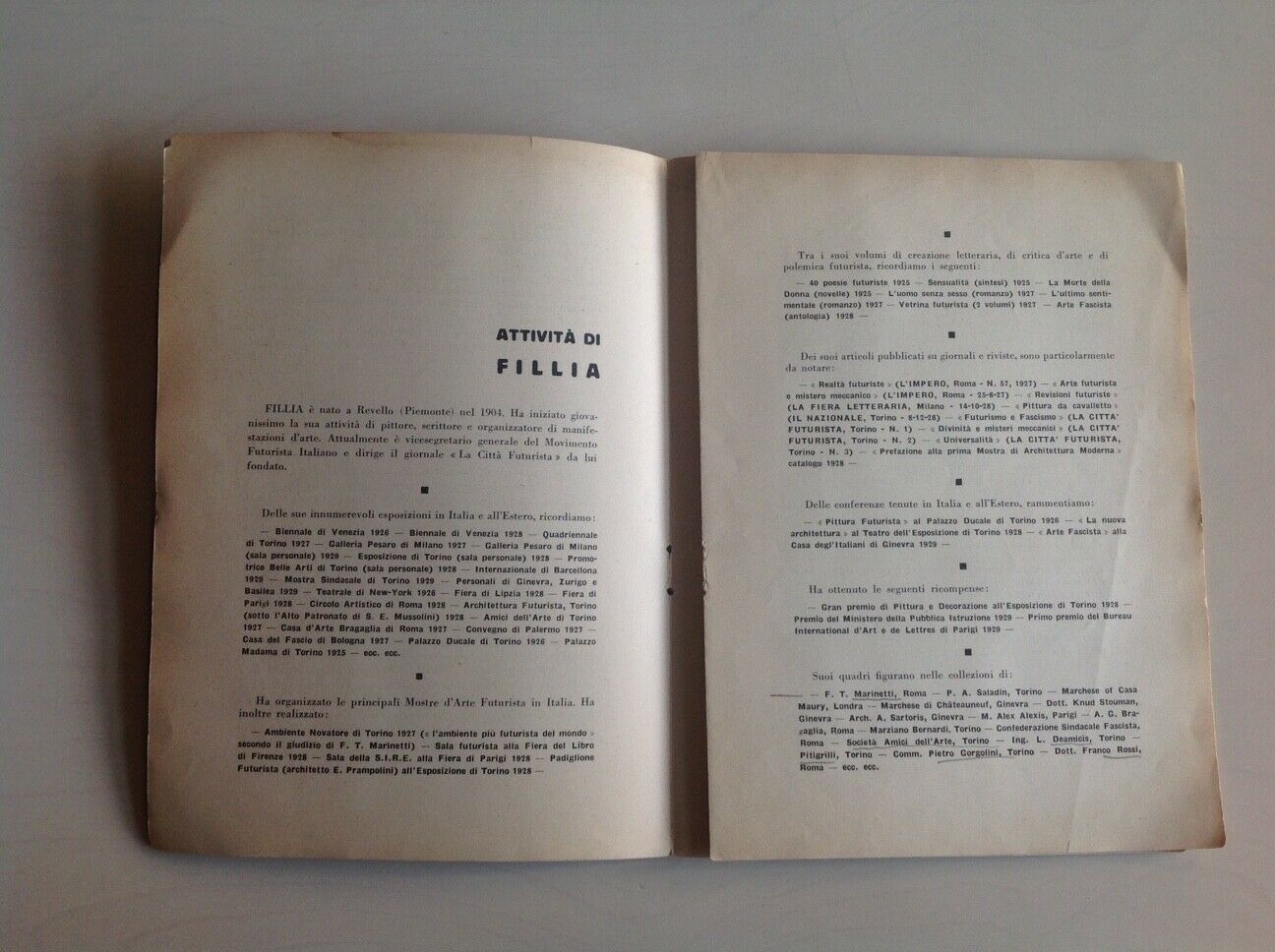 Fillia pittore futurista, studio critico di Paolo Alcide Saladin (Torino, Edizioni d’Arte Futurista, 1929).