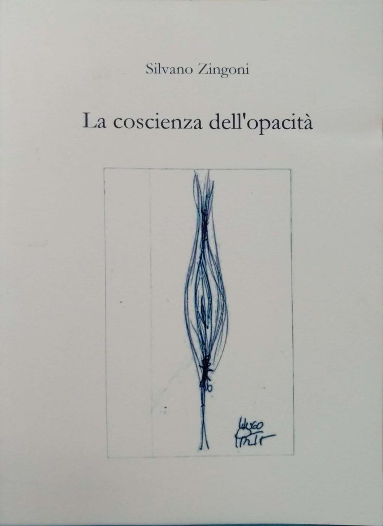 Ma veniamo al nostro libro. La coscienza dell’opacità, di Silvano Zingoni (Parigi, Tiberiana, marzo 2019). La copertina è uno schizzo d’autore dell’organo sessuale femminile, diciamo così. Il libro è una brossura di 122 pagine, alta 18,5 cm. Nel colophon è ben specificato: “stampato in 22 copie numerate a mano (20 in numeri arabi e 2 in numeri latini)”.